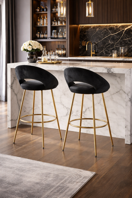 Krzesło Barowe Hoker Sobre – Aksamitny Czarny/Złoty: Elegancja i Wyrafinowanie w Twoim Wnętrzu