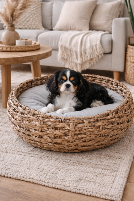 Wygodne legowisko dla psa lub kota w stylu boho