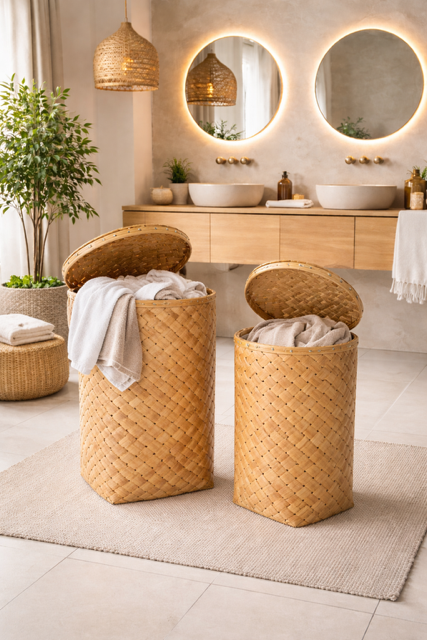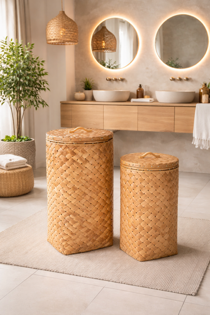 Zestaw koszy na pranie Boho (2 sztuki) to idealne połączenie funkcjonalności i naturalnego designu. Dzięki unikalnemu wzornictwu i precyzyjnemu wykonaniu, kosze nie tylko ułatwią organizację w Twoim domu, ale także staną się estetycznym akcentem, który podkreśli charakter każdego wnętrza. Ich minimalistyczny, boho wygląd doskonale wpisuje się w trendy wnętrzarskie, gdzie natura i prostota odgrywają kluczową rolę.