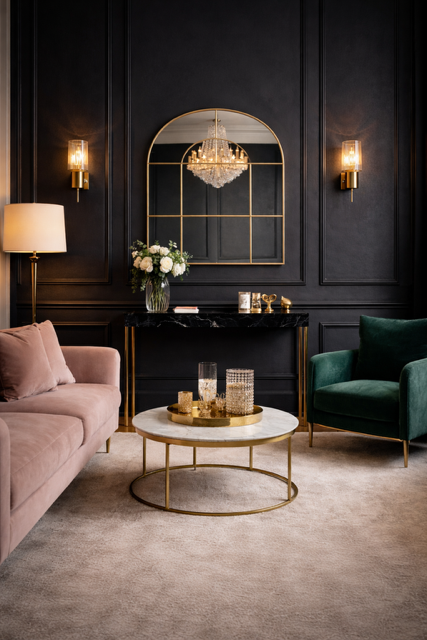 Lustro Okno Złote doskonale wpisuje się w przestrzenie o wyrafinowanym, glamour stylu, gdzie błysk i elegancja odgrywają kluczową rolę. Jego złota rama wspaniale komponuje się z luksusowymi dodatkami, takimi jak welurowe poduszki, kryształowe lampy czy marmurowe blaty. W klasycznych wnętrzach lustro to doda przestrzeni lekkości i optycznie powiększy pomieszczenie, harmonizując z drewnianymi meblami i stonowanymi barwami. Z kolei w nowoczesnych aranżacjach będzie eleganckim kontrastem dla minimalistycznych form i chłodniejszych odcieni, wprowadzając do nich odrobinę luksusu i ponadczasowego stylu. Lustro to idealnie sprawdzi się w salonie, przedpokoju lub sypialni, tworząc centralny punkt aranżacyjny.