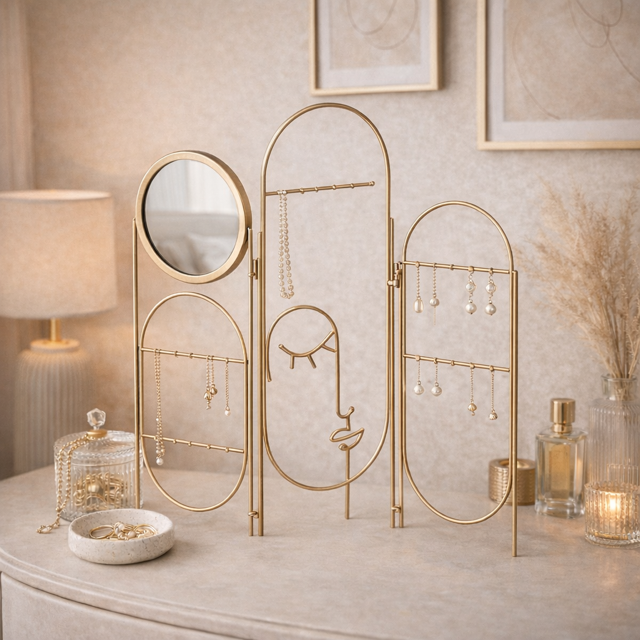 Stojak na biżuterię Scandi Vibe świetnie sprawdzi się w aranżacjach inspirowanych stylem skandynawskim, nowoczesnym, a także boho. Na tle białych lub jasnoszarych ścian stworzy subtelny akcent, który doskonale podkreśli minimalizm pomieszczenia. Idealnie komponuje się z meblami o naturalnych, drewnianych wykończeniach, jak bukowe lub dębowe komody i toaletki. W otoczeniu dodatków w pastelowych odcieniach mięty, pudrowego różu lub szarości, stojak na biżuterię wprowadzi lekkość i świeżość do przestrzeni.