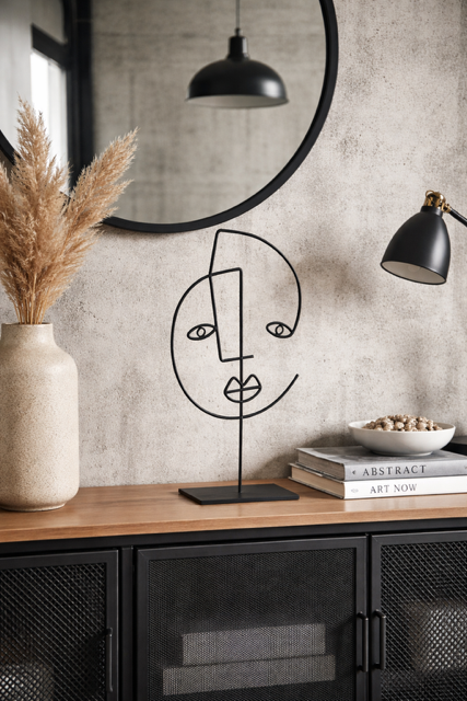 Dekoracja Arty Face II doskonale sprawdzi się w przestrzeniach utrzymanych w stylu nowoczesnym, gdzie dominuje prostota i odważne, artystyczne detale. Będzie również idealnym dodatkiem w aranżacjach eklektycznych, gdzie nietypowe formy i materiały tworzą interesujące połączenia. Możesz ją umieścić w salonie, aby przyciągnąć uwagę gości, w gabinecie, nadając wnętrzu inspirującego klimatu, czy w przedpokoju, gdzie doda wyrazistości przestrzeni już od wejścia.