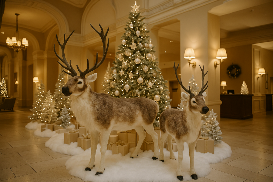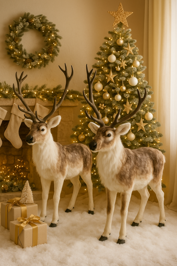 Ogromny Renifer Jak Żywy – Imponująca Dekoracja na Święta Bożego Narodzenia