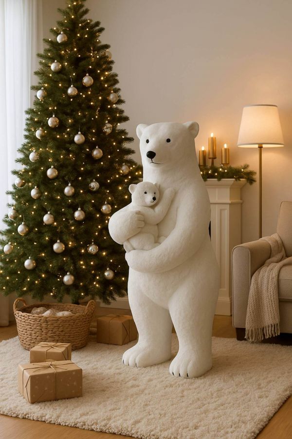 Taki obrazek ściska za serce! Nieprawdopodobnie wyważone emocje zawarte w obrazie, który już dziś może zachwycać Twoje otoczenie. Misiowa Mama jest nie tylko nieprzeciętnie urokliwa ale przede wszystkim wygląda jak żywa ! Pokryta miękkim i delikatnym niczym śnieg materiałem, sprawia wrażenie jeszcze bardziej słodkiej i przyjaznej. Jest tak miła w dotyku,że można się nawet do niej przytulić. Tak oryginalny detal dekoracyjny zachwyci każdego począwszy od najmłodszych, przez nastolatków, rodziców aż do najstarszego pokolenia. Jeśli poszukujesz dodatków świątecznych niespotykanych i nieporównywalnych z innymi, serdecznie polecamy nasz ogromny Miś polarny Mama z dzieckiem.