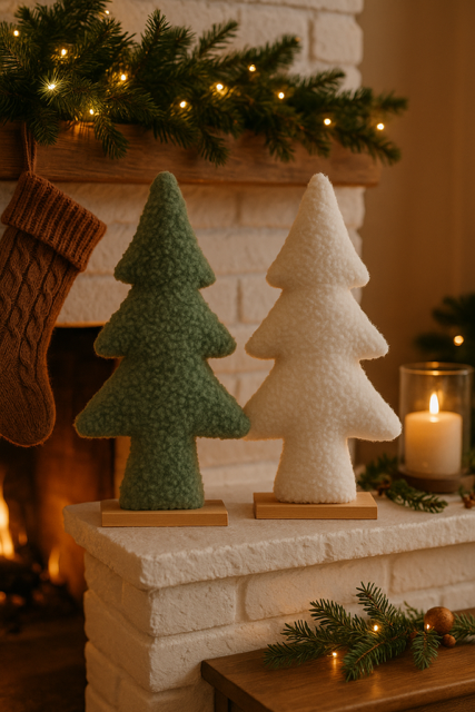Choinka dekoracyjna wykonana z tkaniny boucle to wyjątkowy akcent, który idealnie pasuje do aranżacji świątecznych. Jej miękka, teksturowana powierzchnia dodaje wnętrzom przytulności i elegancji, tworząc subtelny świąteczny nastrój. Boucle to materiał, który swoją wyrazistą fakturą i przyjemną w dotyku strukturą czyni tę choinkę doskonałą ozdobą do nowoczesnych, jak i klasycznych aranżacji świątecznych.