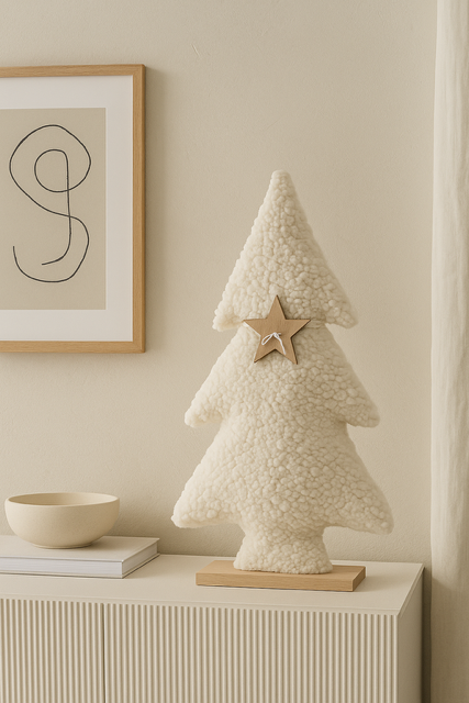 Miękka choinka Teddy Frotte Curl w odcieniach bieli, szarości czy beżu wspaniale komponuje się z typowymi świątecznymi dekoracjami i kolorami, tworząc harmonijną i spójną aranżację. Jej ciepła tekstura podkreśla świąteczny nastrój, a ustawiona na komodzie, stoliku czy parapecie, tworzy przytulną atmosferę, która jest idealna na zimowe wieczory w okresie Bożego Narodzenia.