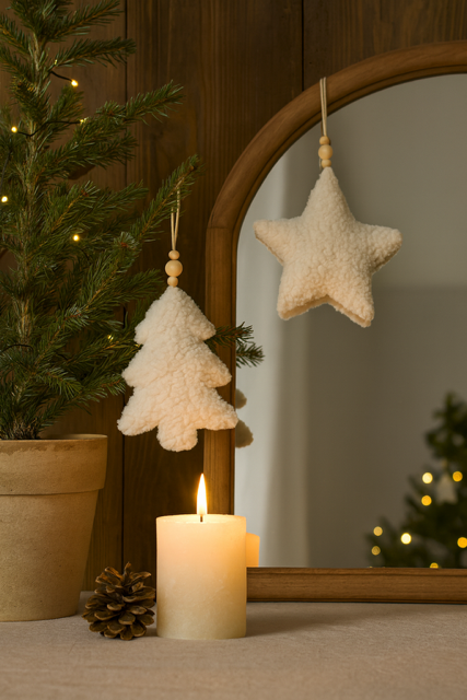 Ozdoby Teddy Curl w naturalnych odcieniach bieli i beżu doskonale komponują się z klasycznymi kolorami świątecznych dekoracji, takimi jak złoto, czerwień czy zieleń. Idealnie nadają się do umieszczenia na choince, girlandach czy w świątecznych aranżacjach stołu, gdzie podkreślą przytulną, świąteczną atmosferę. Te dekoracje są idealnym wyborem, aby wnieść do domu ciepło i magię Świąt Bożego Narodzenia, tworząc wyjątkowy, zimowy nastrój.