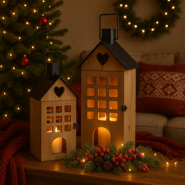Latarnie Domki Duże będą znakomitym uzupełnieniem przestrzeni w stylu skandynawskim, minimalistycznym, boho, a nawet rustykalnym. Dzięki swojemu oryginalnemu designowi doskonale wpisują się w nowoczesne aranżacje, jak również w klasyczne wnętrza, dodając im charakteru i wyjątkowego uroku. Ustawione na stole, półce czy w ogrodzie, te latarnie podkreślą indywidualny styl Twojego domu, wprowadzając do niego przyjemny i ciepły klimat, który zachwyci każdego gościa.