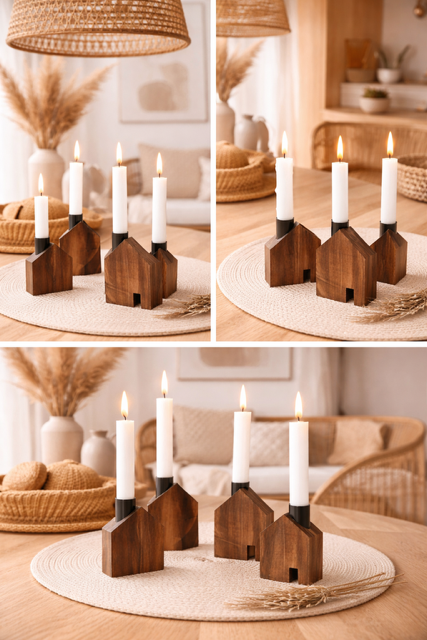 Świeczniki „Domki” – naturalna dekoracja pełna uroku