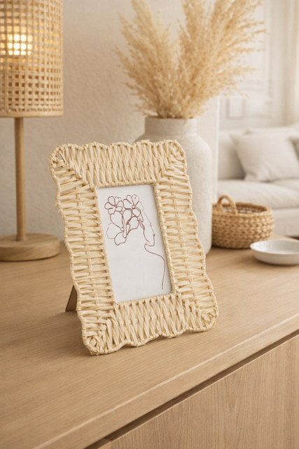 Ramka rattanowa to doskonały wybór do wnętrz utrzymanych w stylu boho, rustykalnym oraz skandynawskim, gdzie naturalne materiały i organiczne formy są kluczowe. Jej prosty, ale elegancki design sprawia, że równie dobrze odnajdzie się w bardziej nowoczesnych przestrzeniach, gdzie rattan wnosi element natury i ciepła. Jest to wszechstronny dodatek, który świetnie sprawdzi się w salonie, sypialni czy na półce w przedpokoju, podkreślając piękno Twoich ulubionych zdjęć.