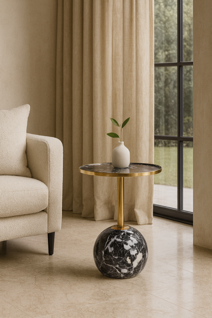 Stolik Marmurowy Scandi Czarny – Wyrafinowana Prostota z Odrobiną Luksusu