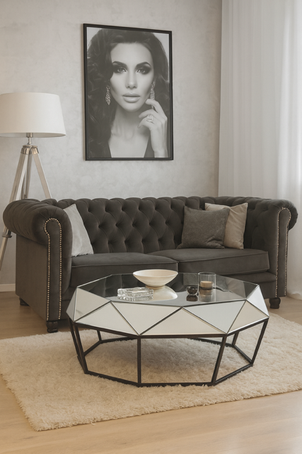 Ten stolik doskonale sprawdzi się w nowoczesnych i minimalistycznych wnętrzach, gdzie stanie się wyjątkowym punktem aranżacji. Jego geometryczna forma i lustrzane wykończenie sprawiają, że idealnie komponuje się z wnętrzami w stylu glamour, dodając im luksusowego charakteru. Jednocześnie stolik Diamonds świetnie wpasuje się w industrialne i loftowe przestrzenie, gdzie kontrastuje z surowymi materiałami, tworząc interesujący akcent.