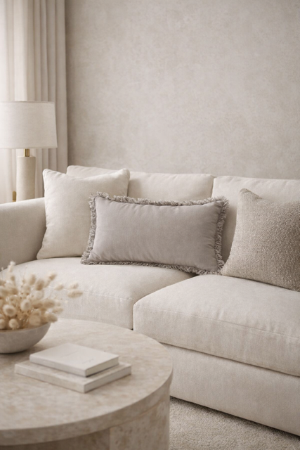 Poduszka z frędzlami jasnoszara