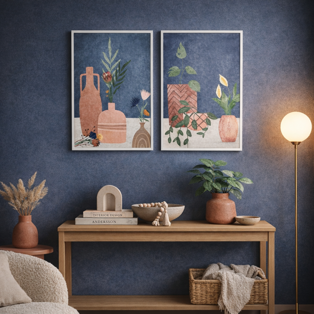 Styl Boho: Dla miłośników stylu boho, obraz Vase jest idealnym dodatkiem, który podkreśla artystyczny charakter wnętrza. Jego naturalne motywy i delikatna paleta kolorów harmonizują z różnorodnymi tkaninami, roślinami i ręcznie robionymi dekoracjami, tworząc przestrzeń pełną życia i kreatywności.
