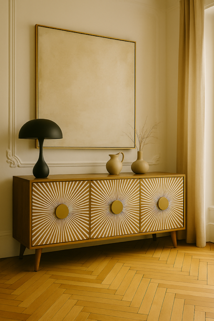 Komoda Sunset doskonale komponuje się z wieloma stylami aranżacyjnymi, wprowadzając do nich ciepło i unikalny charakter: