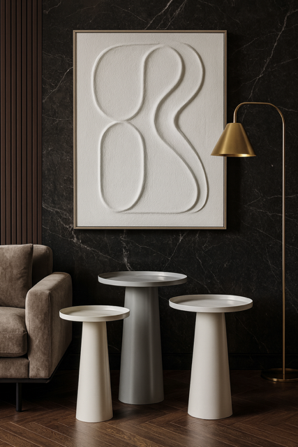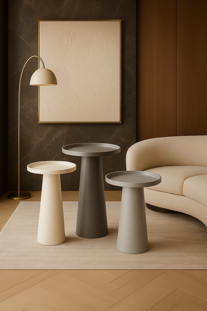 Zestaw Stolików Jacky – Szara Elegancja w Trzech Odsłonach