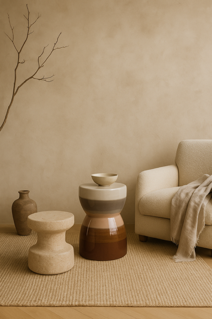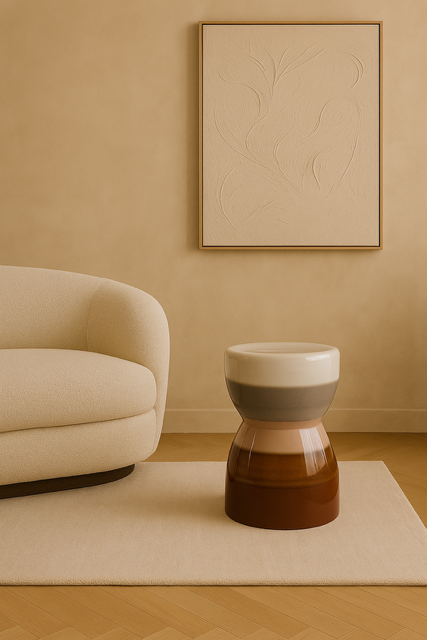 Dla miłośników nowoczesnych wnętrz, stolik Totem z kamionki może być elementem przełamującym surowość i minimalizm. Jego artystyczna forma i wyrazista faktura będą kontrastować z prostymi liniami i jednolitymi powierzchniami, dodając wnętrzu odrobinę szaleństwa i oryginalności. Umieszczony w przestrzeni zdominowanej przez szkło, metal i beton, ten stolik wprowadzi ciepło i przyjemną, organiczną nutę.