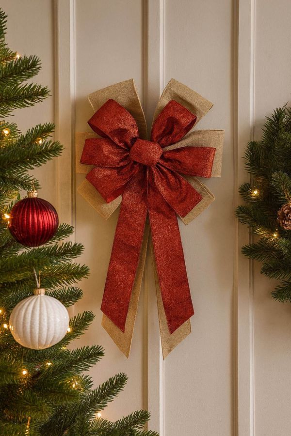 Połączenie klasycznej czerwieni z naturalną teksturą juty to idealny sposób na stworzenie wyjątkowej atmosfery w Twoim domu. Kokarda jutowa doskonale wpisuje się zarówno w tradycyjne, jak i nowoczesne dekoracje świąteczne. Dzięki swojej wielkości stanie się centralnym punktem każdej świątecznej aranżacji – na choince, wieńcu czy drzwiach. Naturalna juta nie tylko pięknie prezentuje się w towarzystwie innych ozdób, ale także wprowadza do wnętrza przytulność i ciepło, które są esencją magii świąt.