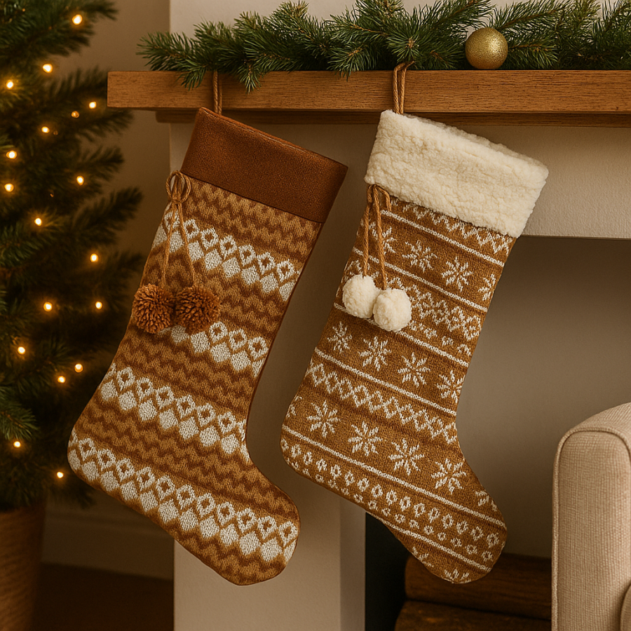 Skarpeta w brązowym kolorze doskonale wpisze się w aranżacje inspirowane stylem retro, rustykalnym czy vintage, dodając im wyjątkowego charakteru. W połączeniu z naturalnymi ozdobami, takimi jak gałązki jodły czy szyszki, stworzy ciepłą, przytulną atmosferę. W nowoczesnych wnętrzach stanie się ciekawym akcentem, który podkreśli świąteczny klimat. Idealna do zawieszenia nad kominkiem, na ścianie czy w pobliżu choinki, zachwyca swoim unikalnym stylem.
