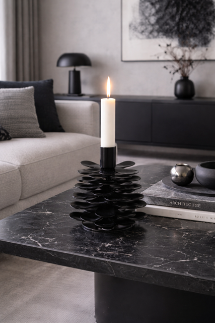 Ten wyjątkowy świecznik w kształcie szyszki to idealny sposób na wprowadzenie świątecznego nastroju do Twojego domu. Jego czarna, elegancka forma pięknie komponuje się z blaskiem świec, tworząc ciepłą, przytulną atmosferę podczas długich, zimowych wieczorów. Świecznik Szyszka to doskonała ozdoba, która nada wnętrzu niepowtarzalnego uroku, doskonale wpisując się w świąteczny wystrój.