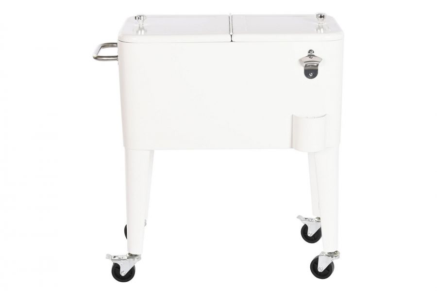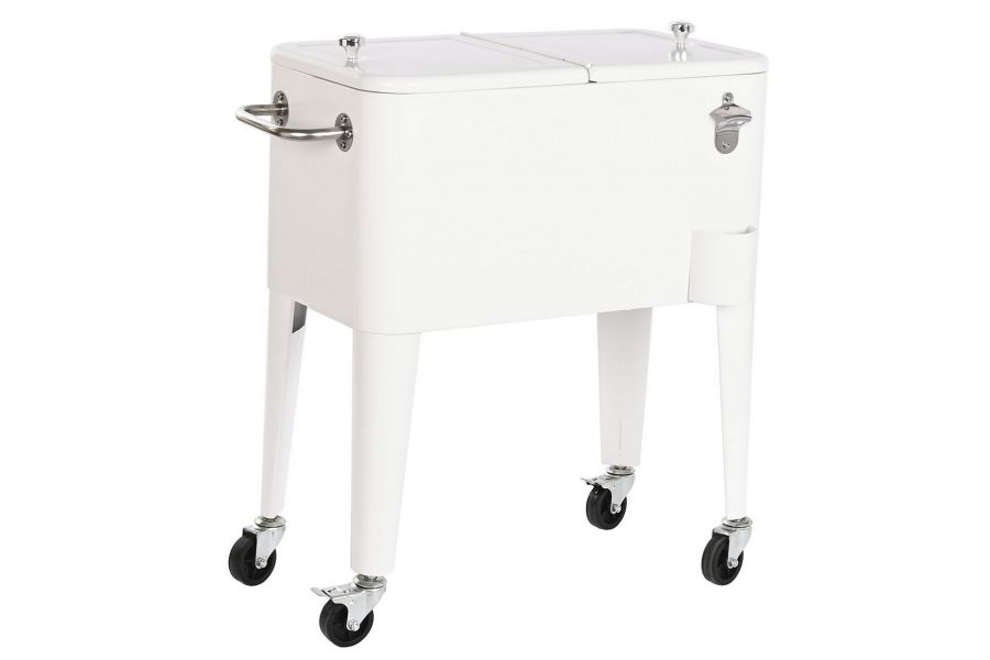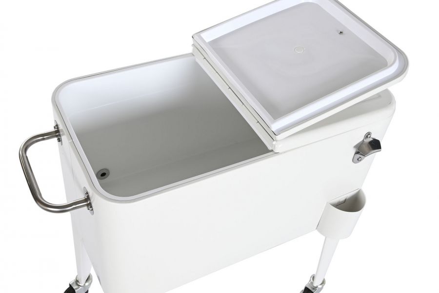 Biała lodówka retro ogrodowa na kółkach – stylowa funkcjonalność na każdą okazję