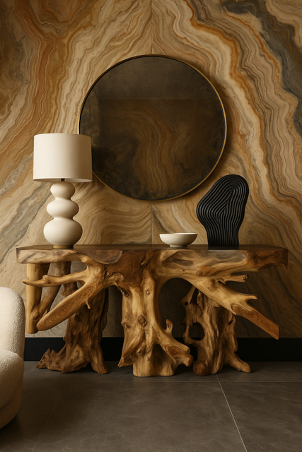 Elegancka Konsola Drewniana Korzeń Drzewa to niezwykłe rozwiązanie dla nowoczesnych wnętrz. Została wykonana z autentycznego korzenia litego drewna, co nadaje jej niezwykły charakter i wyjątkową urodę. Dzięki swojej niekonwencjonalnej formie i naturalnemu pięknu, doskonale komponuje się z nowoczesnymi aranżacjami wnętrz, dodając im niepowtarzalnego uroku i wyrazu. Jednym z wnętrz, w których Konsola Drewniana Korzeń Drzewa może z powodzeniem znaleźć swoje miejsce, są minimalistyczne przestrzenie. W minimalistycznych wnętrzach, gdzie dominuje prostota formy i neutralne kolory, ta konsola stanie się centralnym elementem, który doda ciepła i naturalnego uroku. Ponadto, konsola ta świetnie sprawdzi się również w nowoczesnych loftach lub industrialnych przestrzeniach. Jej surowość i naturalność doskonale komponują się z surowymi materiałami takimi jak beton, metal czy cegła, dodając wnętrzu niepowtarzalnego charakteru i wyjątkowej atmosfery.