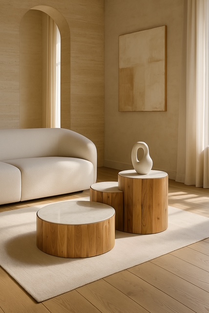 Ława Okrągła Modern – Drewniany Fundament z Marmurową Elegancją