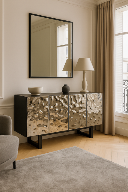 Komoda Caldera – nowoczesny blask i geometryczna elegancja