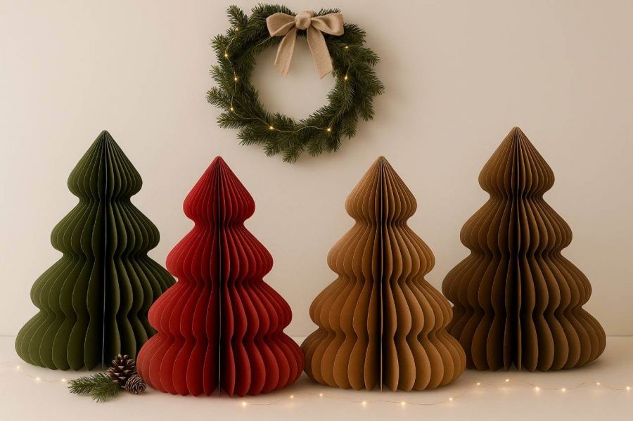 Dodaj swoim świątecznym dekoracjom wyjątkowego charakteru dzięki papierowej choince origami w klasycznym zielonym odcieniu o wysokości 60 cm. Jej subtelna elegancja i nawiązanie do natury uczynią każdą przestrzeń bardziej przytulną i świąteczną.