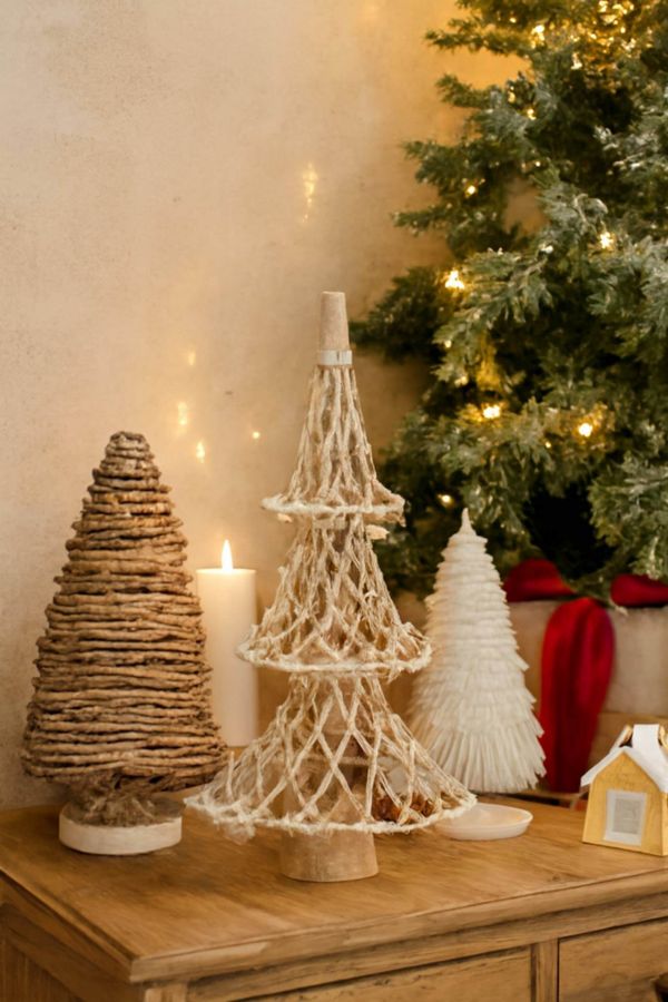 - Minimalizm i skandynawski klimat – Dzięki prostemu designowi i stonowanej kolorystyce, choinka makrama doskonale pasuje do minimalistycznych wnętrz, nadając im przytulny, świąteczny charakter bez przytłaczania przestrzeni.