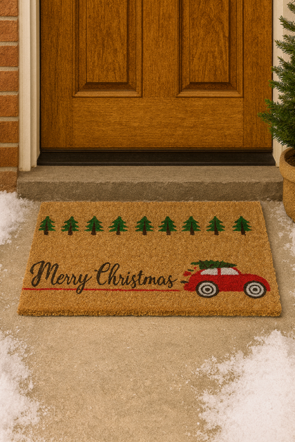Wycieraczka kokosowa „Xmas Car” to więcej niż praktyczny dodatek do Twojego domu. Jej świąteczny motyw – czerwony samochód przewożący choinkę – wprowadza ciepło i radosny klimat od samego progu. To idealne rozwiązanie, aby już od wejścia stworzyć atmosferę pełną uroku Bożego Narodzenia.