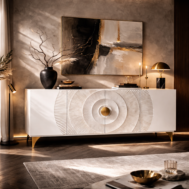 "Golden Sunset" to komoda, która doskonale wpisze się w różnorodne style aranżacyjne. Wnętrza w klimacie boho, japandi czy nowoczesnego minimalizmu zyskają dzięki niej elegancki i naturalny akcent. Jasna kolorystyka i harmonijne wzornictwo wprowadzają do pomieszczenia poczucie przestrzeni i lekkości, co czyni ją idealnym wyborem do salonów, sypialni czy jadalni. To mebel, który łączy estetykę z praktycznością, tworząc przestrzeń pełną harmonii i ciepła.