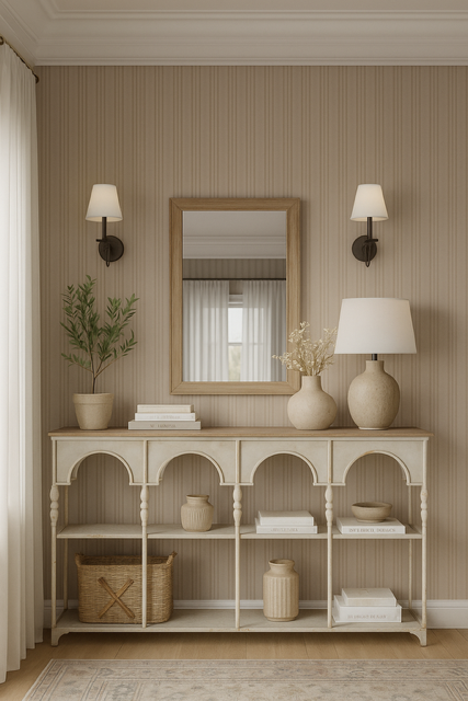 Dzięki dwóm przestronnym półkom konsola oferuje funkcjonalne miejsce na dekoracje, książki czy akcesoria, sprawdzając się zarówno w salonie, przedpokoju, biurze czy sypialni. Jej uniwersalny charakter sprawia, że pasuje do wnętrz w stylu modern loft, minimalistycznym i industrialnym, harmonizując z naturalnymi materiałami, takimi jak drewno, marmur czy beton.