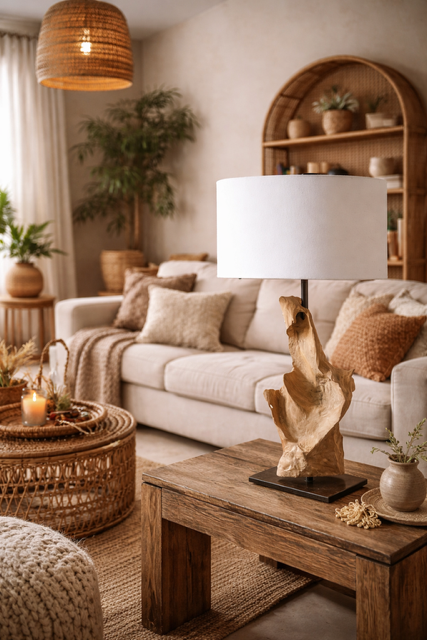 Wyobraź sobie wieczór, w którym delikatne światło otula wnętrze, a na stoliku stoi lampa, która wygląda jak rzeźba stworzona przez samą naturę. Lampa stołowa Woodland o wysokości 65 cm łączy w sobie magię naturalnego drewna tekowego z elegancją prostego abażuru. Każdy egzemplarz jest niepowtarzalny – pełen organicznych kształtów, które wprowadzają do aranżacji harmonię i wyjątkowy charakter.