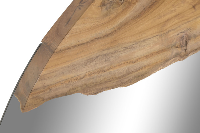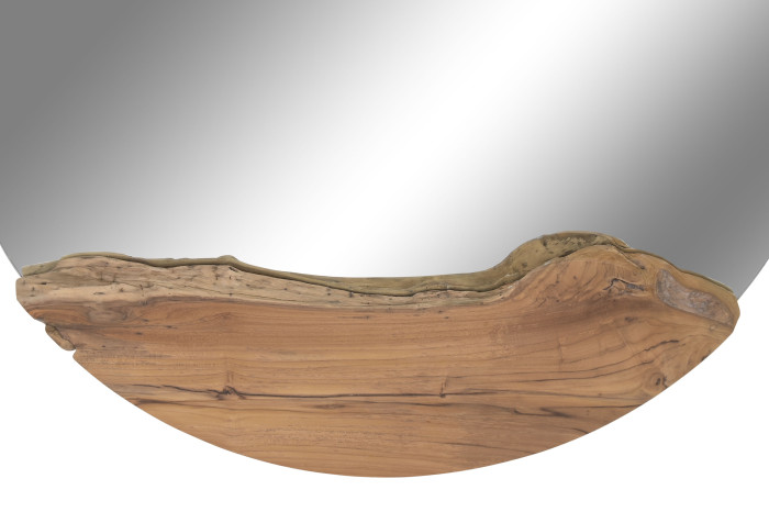 Czy wiesz, że jeden element dekoracyjny potrafi całkowicie odmienić charakter wnętrza? Okrągłe lustro Woodland o średnicy 100 cm łączy w sobie funkcjonalność i artystyczną ekspresję natury. Nieregularne fragmenty drewna tekowego tworzą ramę, która wygląda niczym rzeźba, nadając każdemu egzemplarzowi indywidualny charakter.