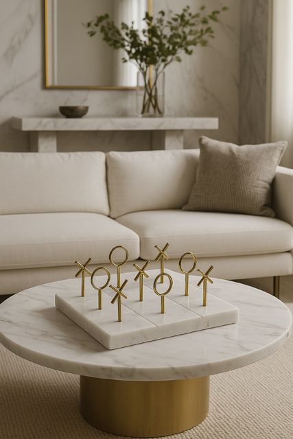 Gra Luxury Tic Tac Toe doskonale wpisze się w aranżacje glamour, modern classic, minimalistyczne czy nowoczesne wnętrza z akcentami w kolorze złota. Ustawiona na stoliku kawowym, konsoli czy półce – stanie się luksusowym detalem, który podkreśla wyrafinowany charakter przestrzeni.