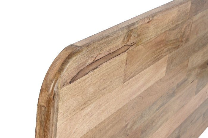 Każdy egzemplarz wykonany z litego drewna mango zachwyca unikalnym rysunkiem słojów i naturalną kolorystyką. Subtelne przejścia barw sprawiają, że zagłówek staje się elementem dekoracyjnym samym w sobie, a jego organiczny charakter podkreśla ponadczasową estetykę.