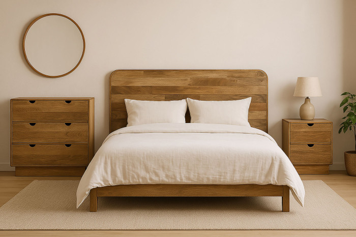 Zagłówek Torino doskonale komponuje się z innymi meblami z tej kolekcji, zwłaszcza z komodami, tworząc spójną aranżację sypialni. Świetnie odnajdzie się w wystroju skandynawskim, nowoczesnym, a także w klimacie boho, gdzie naturalne drewno odgrywa główną rolę. To propozycja dla osób ceniących równowagę między funkcjonalnością a stylem, chcących otaczać się materiałami bliskimi naturze.