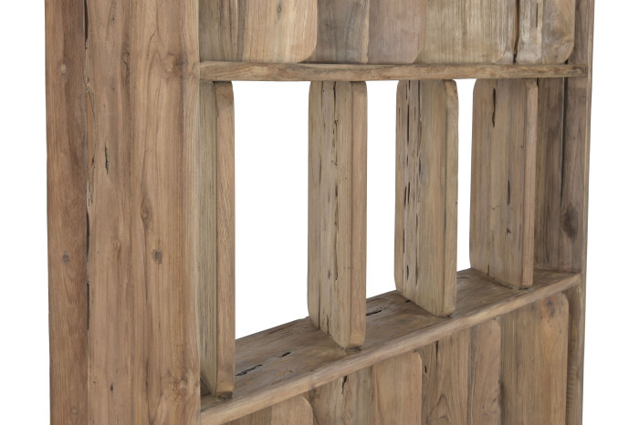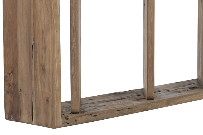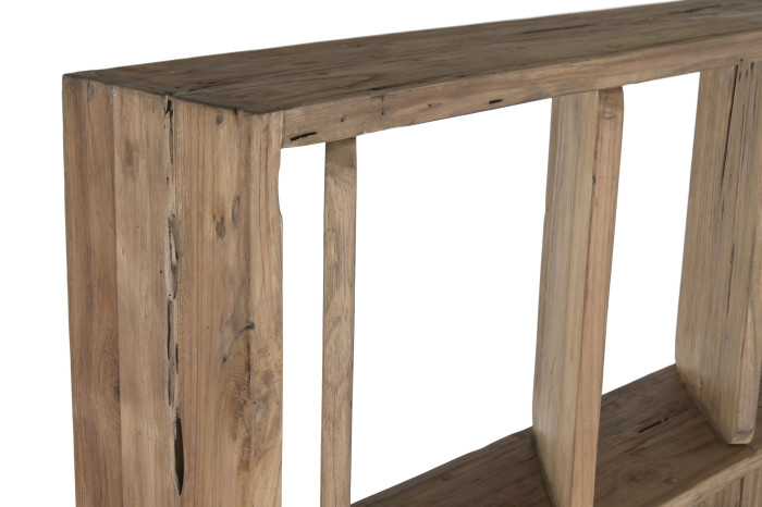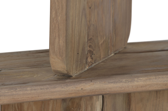 Czy można zatrzymać czas w materii i sprawić, by każdy detal niósł w sobie historię dawnych dni? Regał Valente z kolekcji tworzonej z litego drewna tekowego odzyskanego z recyklingu jest niczym pomnik natury – pełen majestatu, harmonii i szlachetnego piękna.