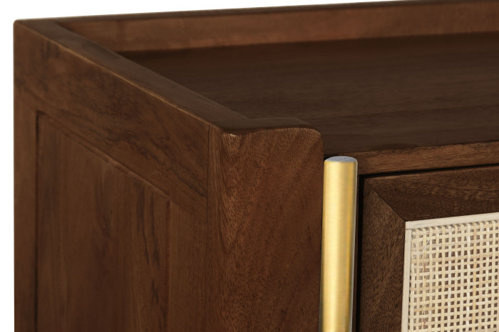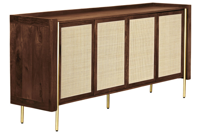 Komoda Capri nie jest kolejnym meblem, który wtapia się w tło. To obiekt designu – spektakularna forma, która łączy głębię ciemnego mango, subtelność naturalnego rattanu i szlachetność złotych detali. Capri ma w sobie coś z rzeźby użytkowej, stając się centralnym punktem aranżacji, wokół którego buduje się charakter całego wnętrza.