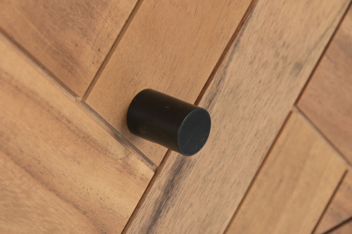 Jej naturalny odcień i wzór inspirowany parkietem w stylu chevron sprawiają, że przestrzeń wokół staje się bardziej przytulna, nastrojowa i pełna charakteru. Komoda idealnie odnajdzie się w salonie, gdzie może być tłem dla świątecznych lampek, świec i porcelany. W sypialni natomiast doda atmosfery spokoju, tworząc przestrzeń, w której po prostu chce się przebywać. To nie tylko mebel – to punkt równowagi w codziennym pośpiechu.
