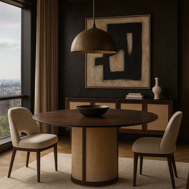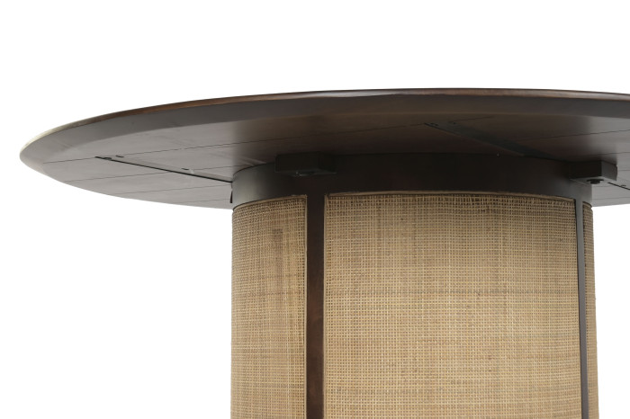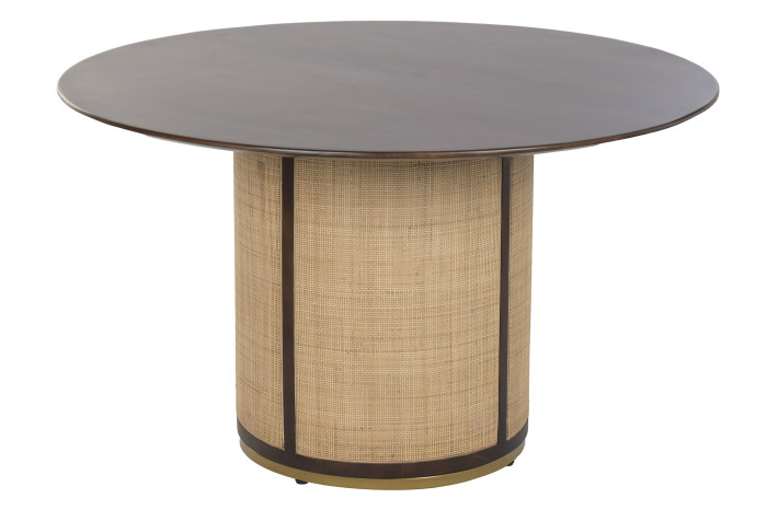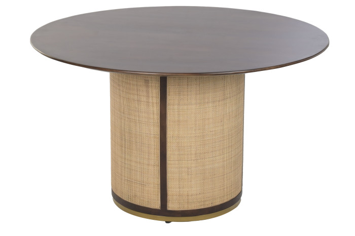 Stół Capri to manifest designu, w którym siła formy spotyka się z delikatnością detalu. Okrągły blat z ciemnego drewna mango opiera się na rzeźbiarskiej podstawie oplecionej naturalnym rattanem, tworząc sylwetkę, która przyciąga spojrzenie i buduje atmosferę luksusu. Ten stół nie jest tylko miejscem spotkań — to centrum wnętrza, które nadaje ton całej aranżacji.