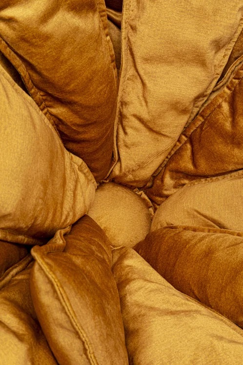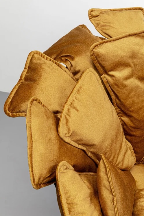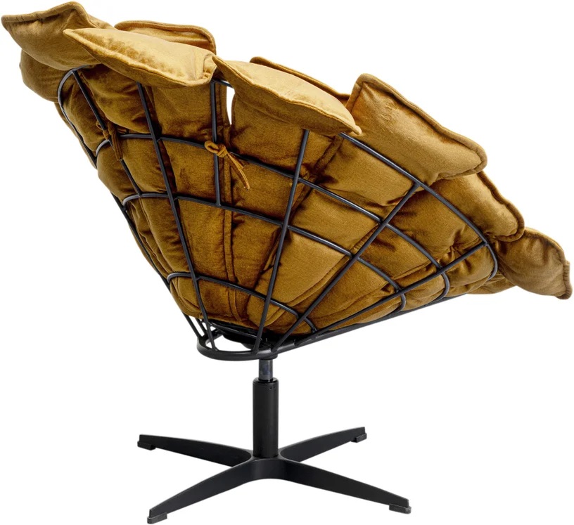 Tapicerka w odcieniu musztardowej żółci subtelnie odbija światło, wprowadzając do wnętrza nutę elegancji i ciepła. Czarne, stalowe podstawy nadają całości nowoczesnego charakteru i równowagi wizualnej. Ten duet tworzy niebanalne połączenie luksusu i przytulności, które natychmiast ożywia każde pomieszczenie.