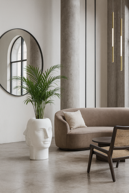 Jak dodać wnętrzu wyrafinowanego charakteru i artystycznego wyrazu? Donica Sculpture Head biała zachwyca formą inspirowaną rzeźbą – subtelne rysy twarzy i matowe wykończenie tworzą niezwykle estetyczny akcent, który łączy sztukę z designem współczesnych przestrzeni.