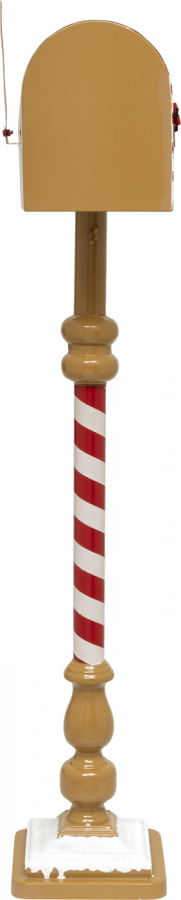 Ciepłe barwy karmelu i biało-czerwone paski inspirowane motywem candy cane sprawiają, że skrzynka wygląda jak element prosto z piernikowej wioski Mikołaja. Zdobienia w formie cukrowych lasek, piernikowych ludzików i napis „Lettres au Père Noël” dodają jej niezwykłego wdzięku. To detal, który idealnie dopełnia świąteczne dekoracje w stylu gingerbread i candy house.