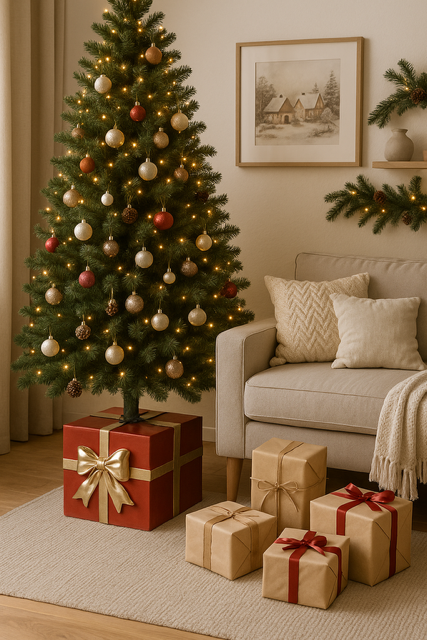 Ten wyjątkowy stojak w formie prezentu w czerwono-złotych barwach wygląda niczym ozdoba prosto z filmu o Bożym Narodzeniu. Jego połyskująca wstążka i elegancka kokarda sprawiają, że choinka nabiera zupełnie nowego charakteru. Każde drzewko, nawet to niewielkie, zyskuje dzięki niemu dostojność i wyjątkową oprawę – bez potrzeby kosztownych dekoracji.