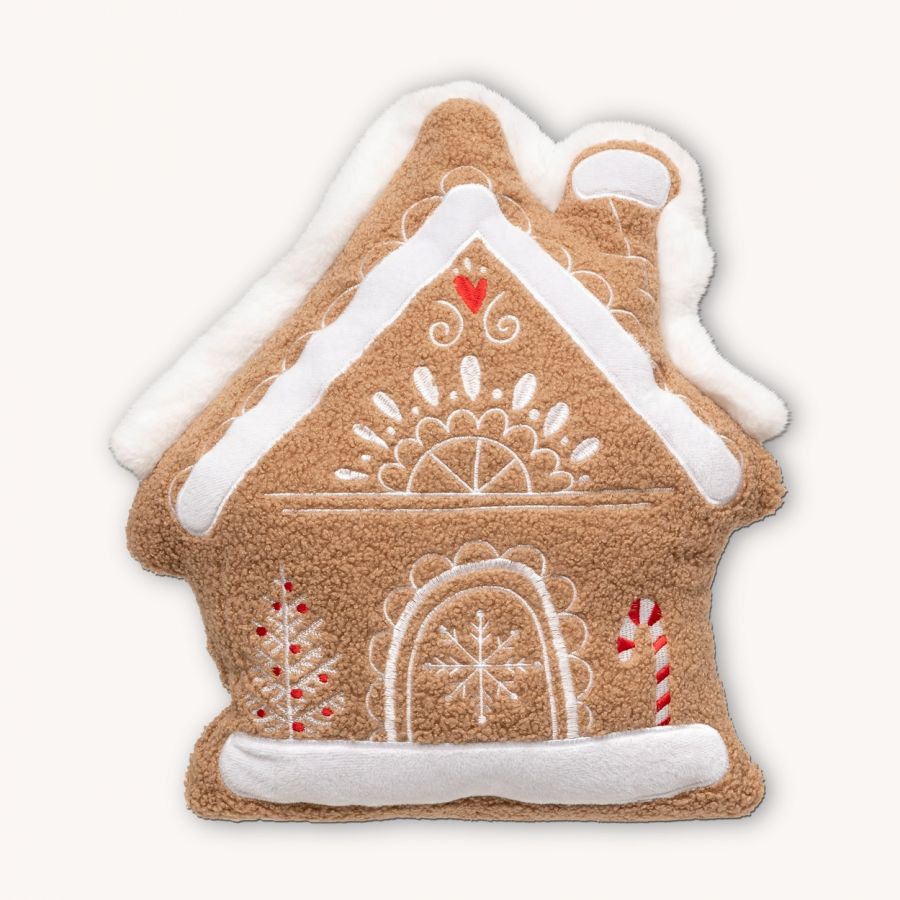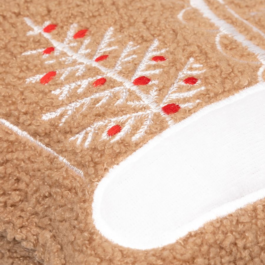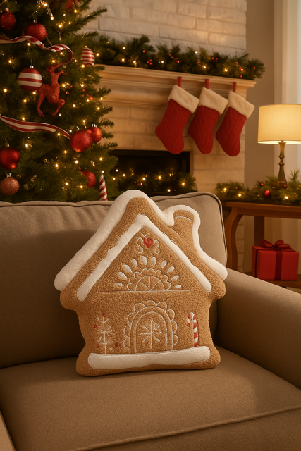 Wystarczy jedno spojrzenie, by poczuć zapach cynamonu i słodkiego lukru — Poduszka świąteczna Domek z piernika to esencja świątecznego uroku. Jej miękka faktura boucle i haftowane detale sprawiają, że wygląda niczym maleńki piernikowy domek prosto z bajki o Bożym Narodzeniu. To dekoracja, która odmienia wnętrze, wprowadzając do niego radość, ciepło i nutkę nostalgii.