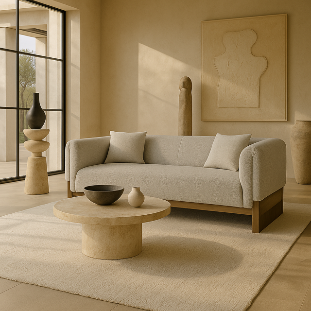Z wymiarem 220 × 95 × 77 cm, Sofa Madera Crudo idealnie komponuje się z wnętrzami w stylu modern organic, japandi, minimalistycznym czy nowoczesnym klasycyzmem. Ustawiona w salonie z dużymi przeszkleniami, przy kamiennym stoliku kawowym lub na tle naturalnych tkanin, staje się sercem przestrzeni — miejscem relaksu, światła i naturalnej elegancji.