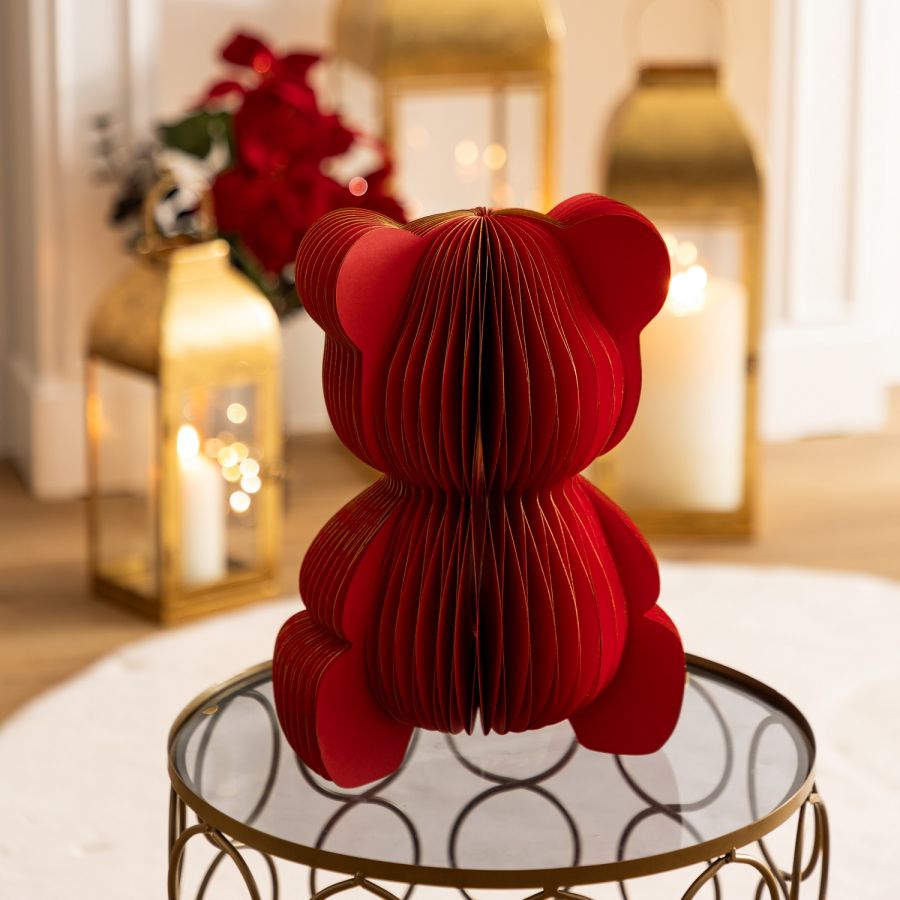 Dekoracja Miś papierowy origami 30 cm czerwony