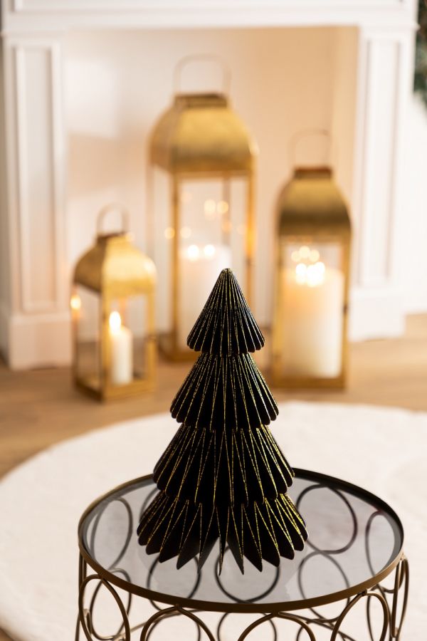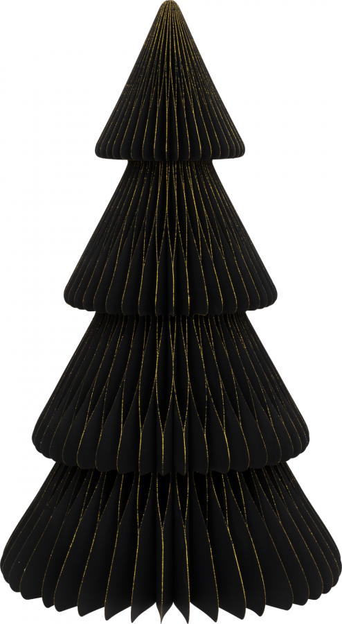 Wykonana z grubego, przestrzennego papieru o strukturze przypominającej plaster miodu, choinka po rozłożeniu zachwyca swoją pełną, symetryczną formą. Jej złote akcenty pięknie odbijają światło, tworząc subtelny blask. Choinka papierowa 90 cm Black świetnie prezentuje się zarówno jako samodzielna dekoracja, jak i w towarzystwie ozdób w odcieniach złota, kremu czy bieli.